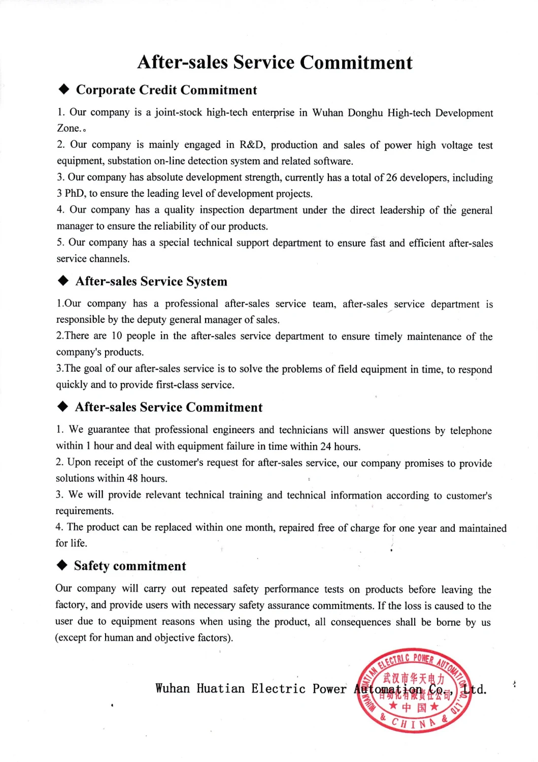 Wuhan Huatian Electric Power Automation CO., LTD